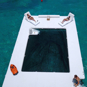 डेक कुर्सी के साथ सस्ती कीमत वाली यॉट स्विमिंग पूल 2 मीटर गहरी इन्फ्लैटेबल फ्लोटिंग डॉक जाल समुद्री पूल डीडब्ल्यूएफ फ्लोट वॉटर आइलैंड