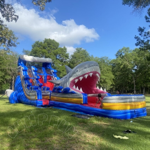 Nouveau design toboggan gonflable de requin géant toboggans aquatiques de requin pour enfants en plein air avec piscine grands toboggans humides en PVC