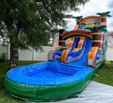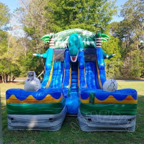 Jumpfun Dinosaure Toboggans Marbre Couleur Gonflable Double Toboggan Jungle Jurassique Toboggan Humide