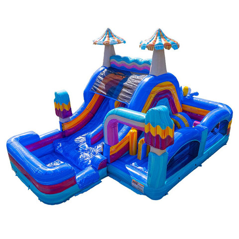Jumpfun Candy House Toboggan gonflable Maison de saut de 8x4 mètres Grand toboggan gonflable Glissières sèches à double voie